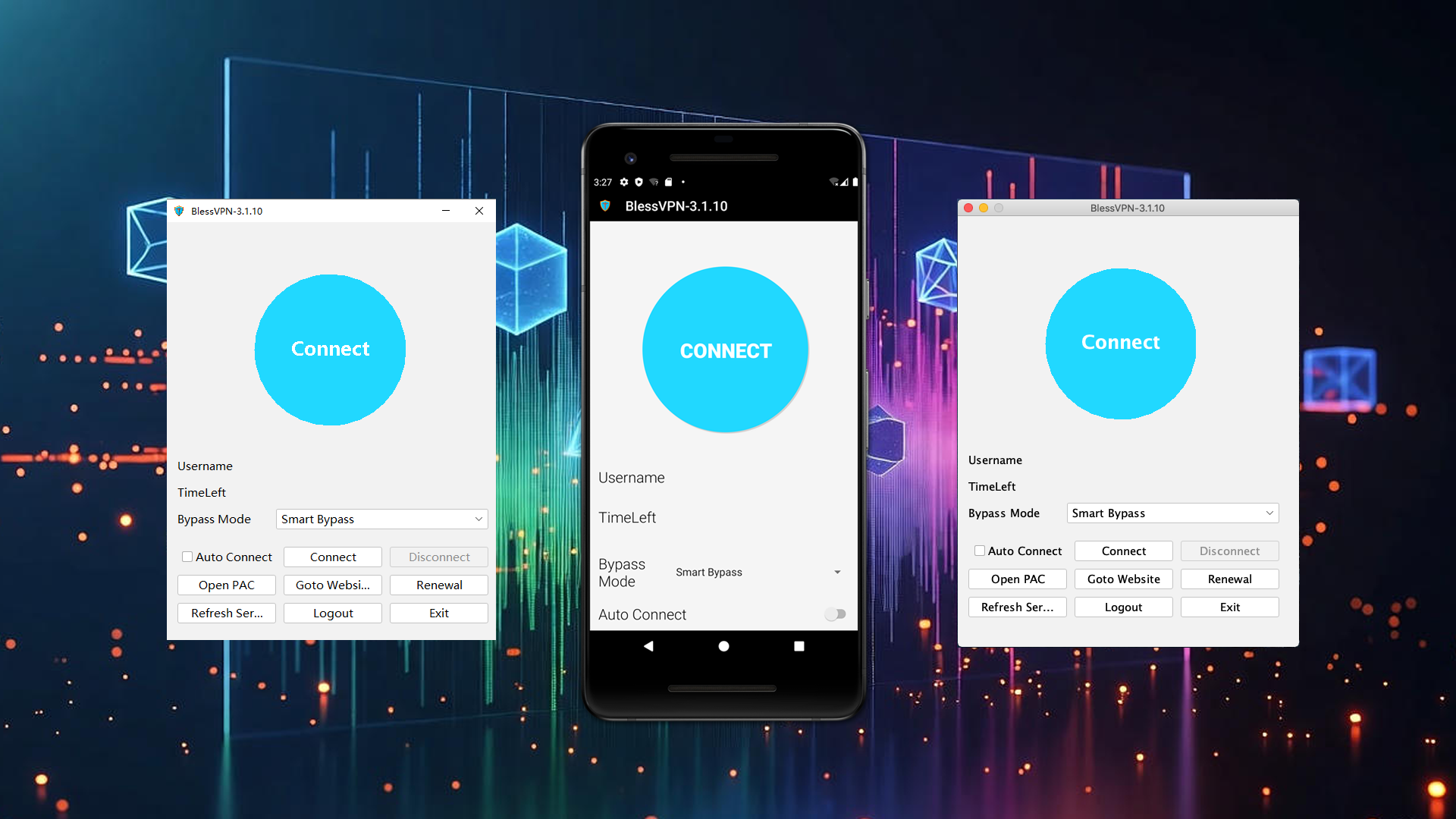 Bless VPN Supports Android, Windows, Linux, MacOS platform, more platforms will comming soon.